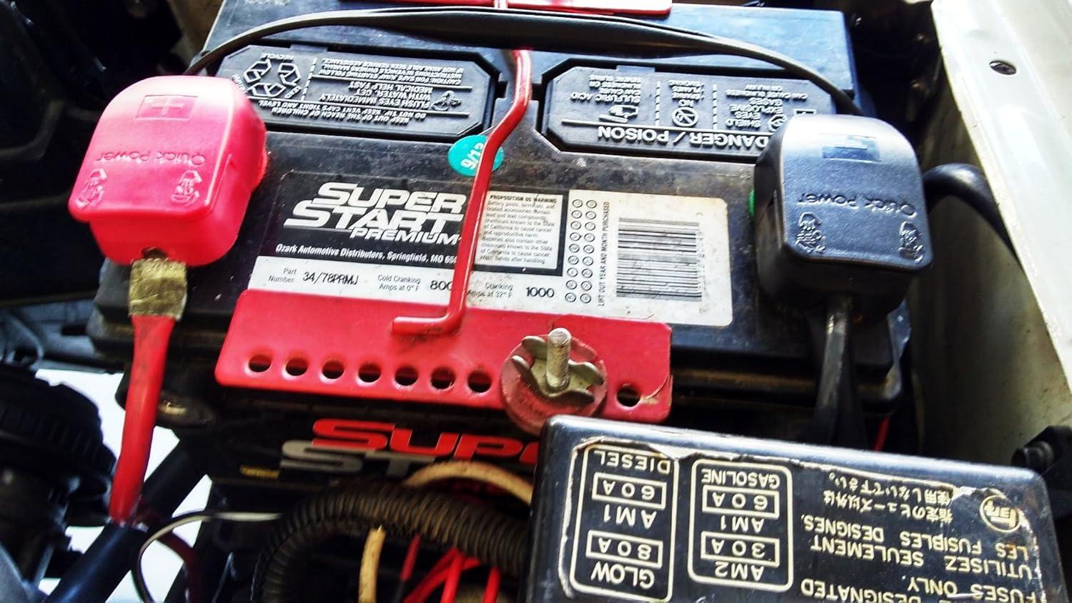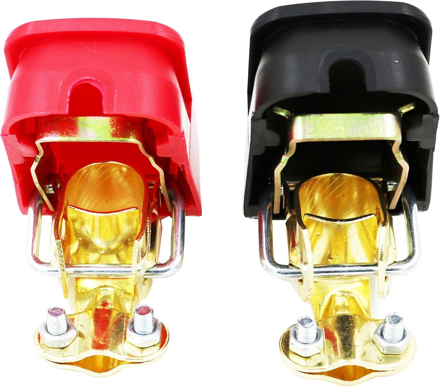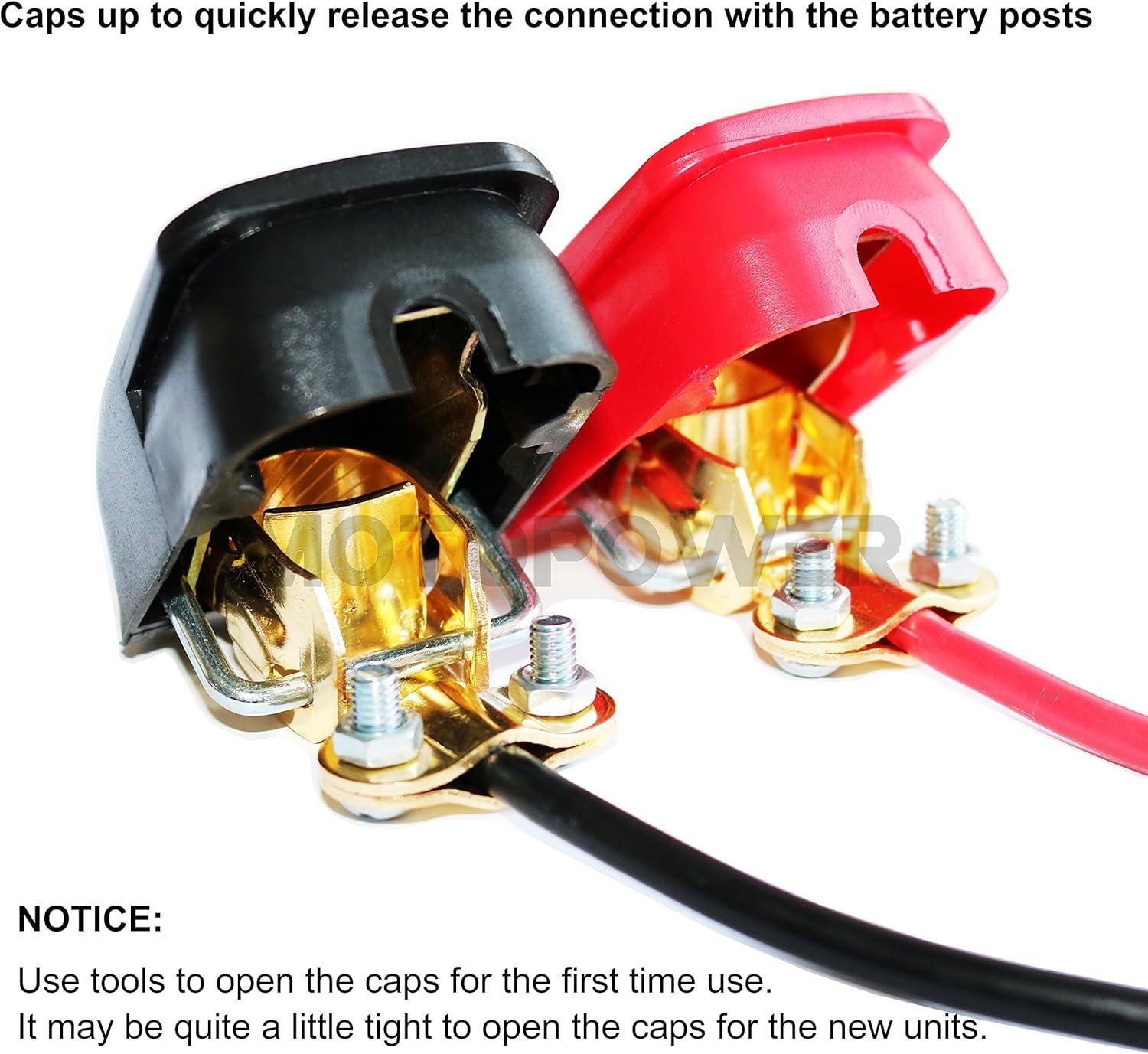 Quick Release Design – Attach to battery terminals by clamping down and Lift caps to remove from battery terminals.