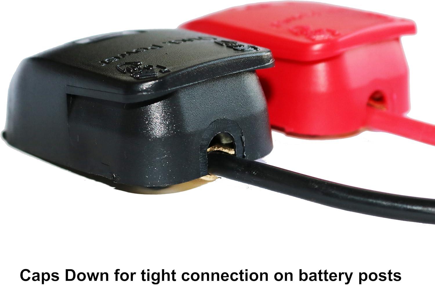 Color-coded caps – Red “+” and Black “-“. Easy to identify red and black covers to prevent the risk of electrical shock.