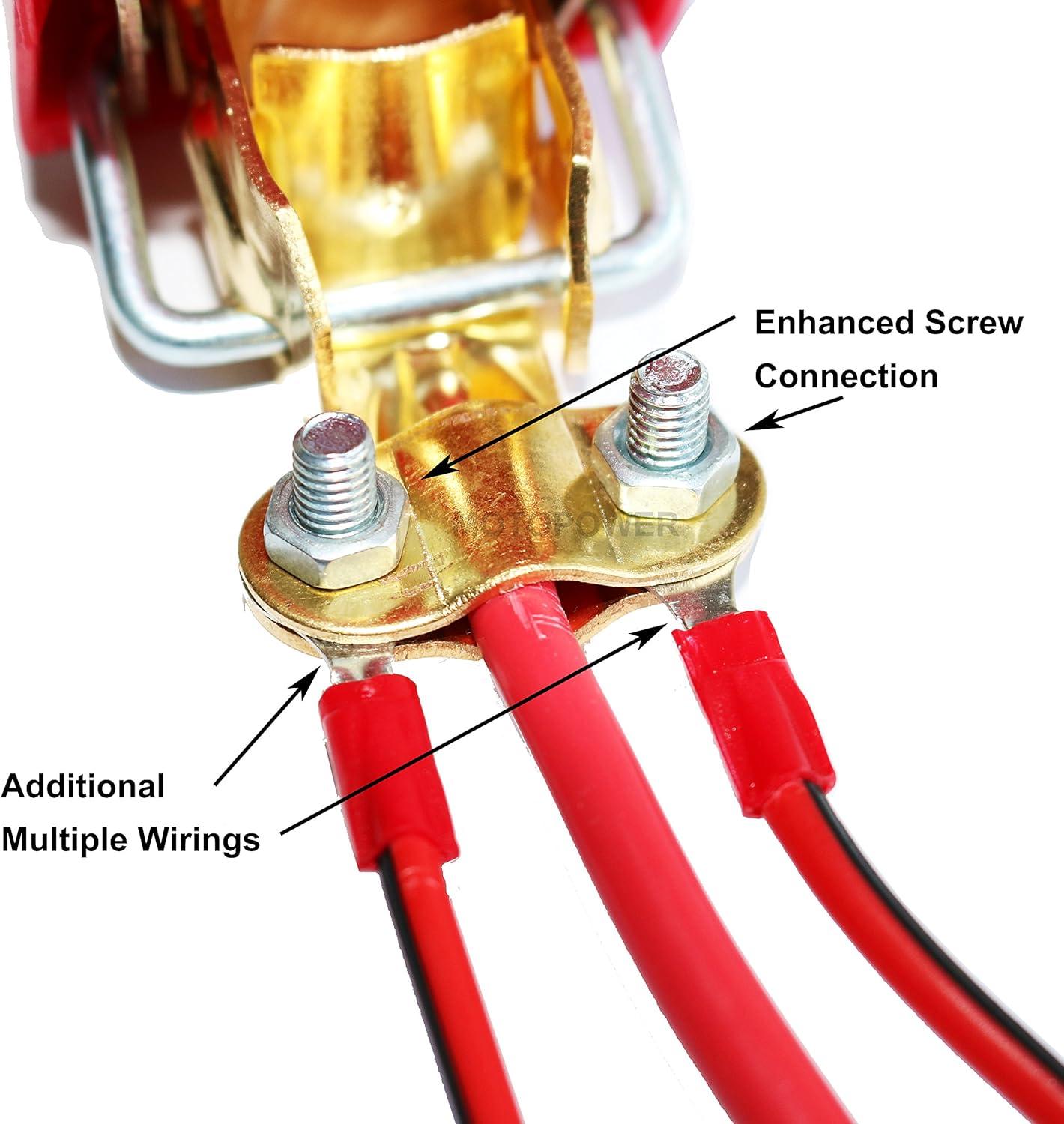 Heavy Duty – Fits 4 to 6 gauge wires and is rated for 500 amps continuous 800 amps surge at 12 volts.